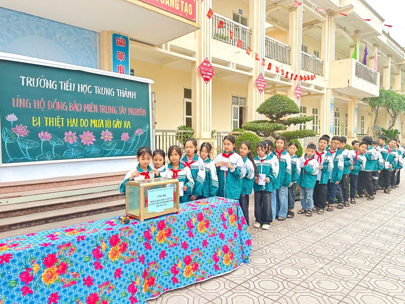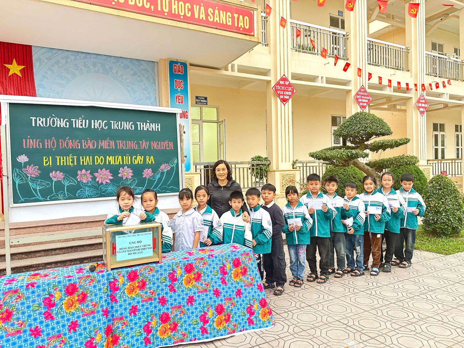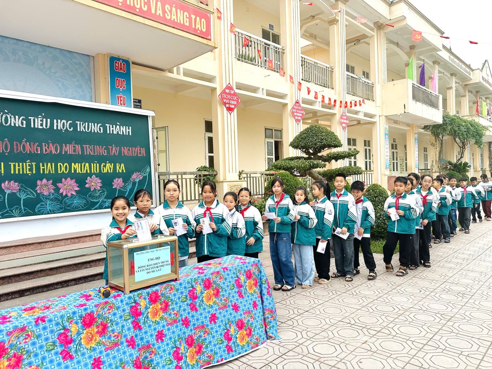 Sáng ngày 05/12/2025, thầy cô và học sinh trường Tiểu học Trung Thành đã cùng nhau tổ chức buổi quyên góp đầy ý nghĩa nhằm hỗ trợ đồng bào miền Trung và Tây Nguyên đang chịu thiệt hại nặng nề do mưa lũ.