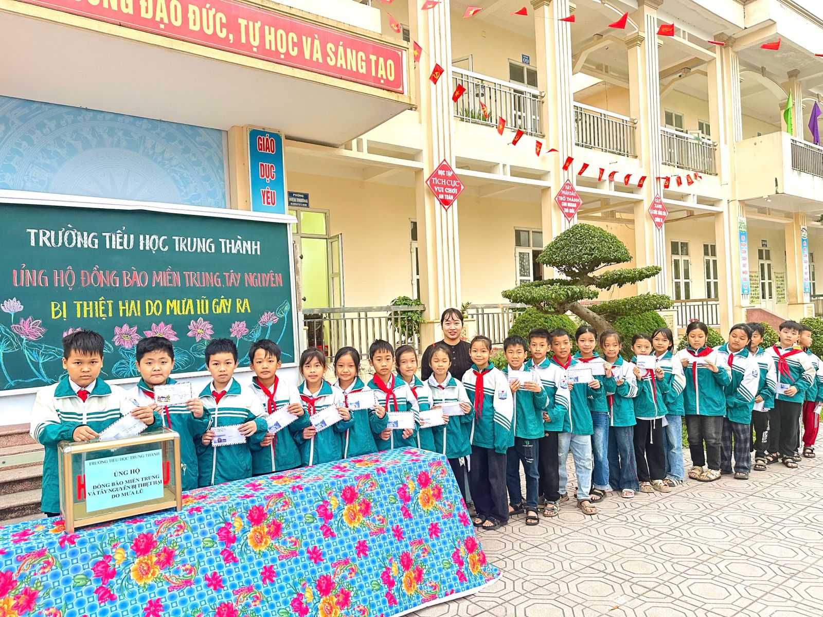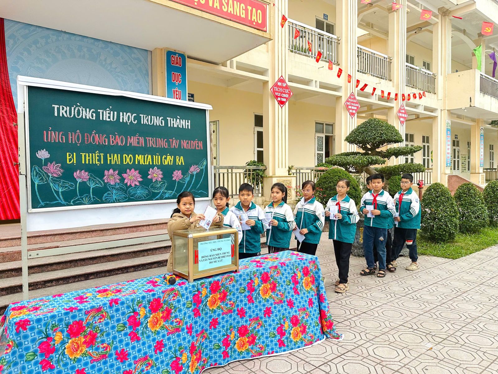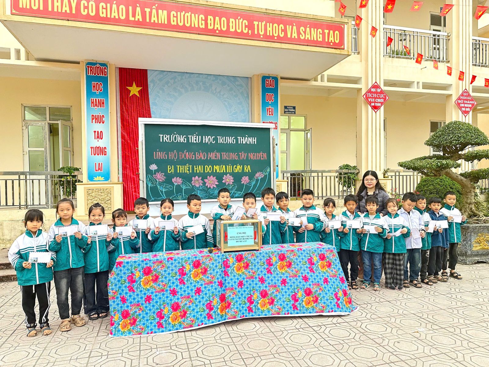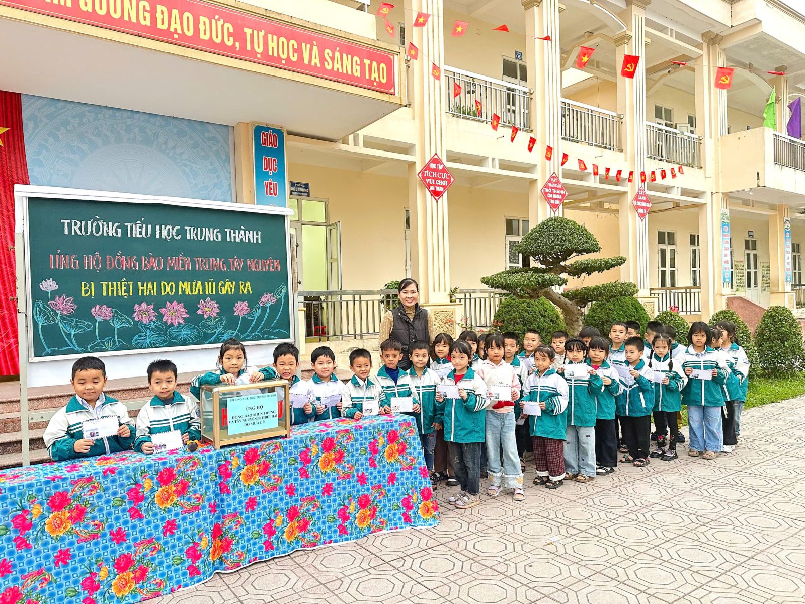 Sáng ngày 05/12/2025, thầy cô và học sinh trường Tiểu học Trung Thành đã cùng nhau tổ chức buổi quyên góp đầy ý nghĩa nhằm hỗ trợ đồng bào miền Trung và Tây Nguyên đang chịu thiệt hại nặng nề do mưa lũ.