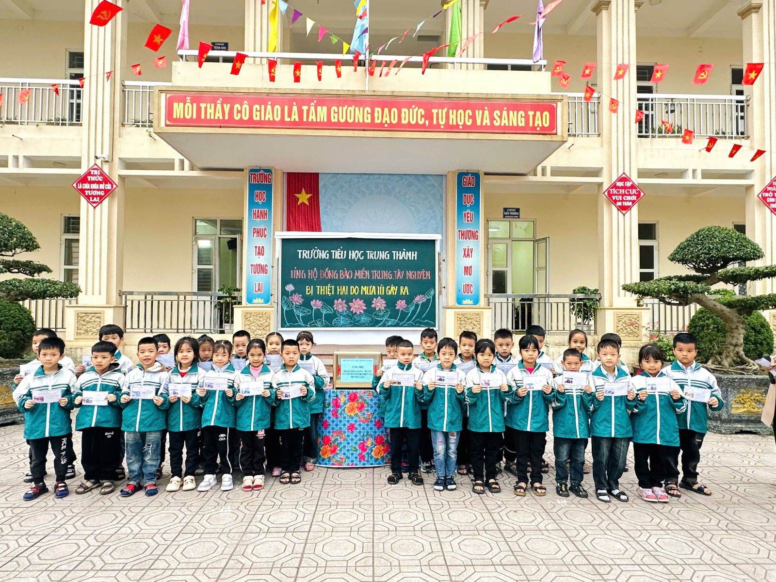 Hy vọng rằng tấm lòng của tập thể trường Tiểu học Trung Thành sẽ góp thêm một phần nhỏ bé giúp miền Trung – Tây Nguyên sớm vượt qua những mất mát do thiên tai gây ra.