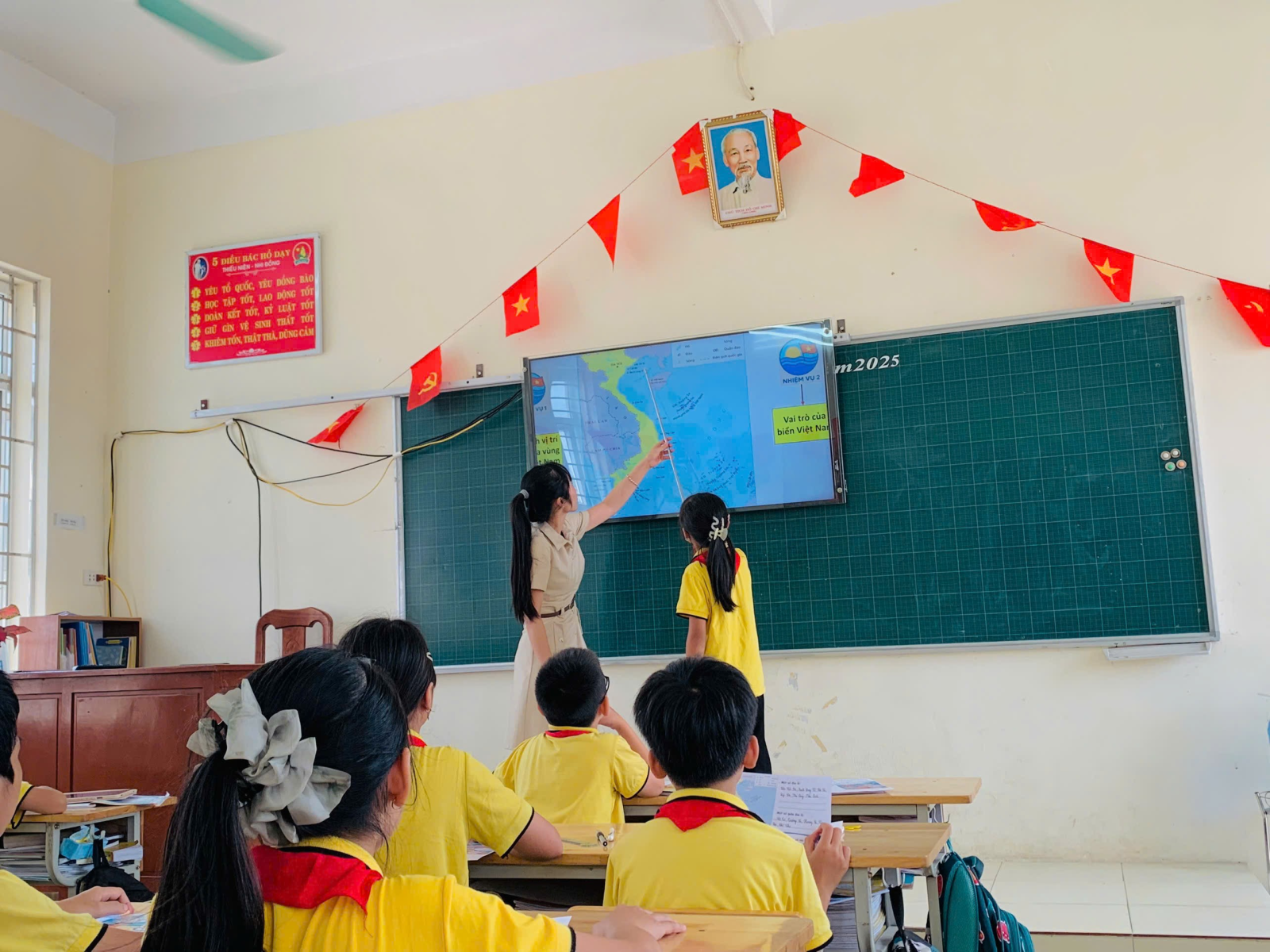 Học sinh được tiếp cận bài học qua hình ảnh, âm thanh, trò chơi tương tác, video minh họa sinh động giúp các em thấy học mà vui – vui mà học. Từ đó giúp học sinh dễ dàng xác định được vị trí vùng biển, đảo, quần đảo và vai trò của biển Việt Nam.