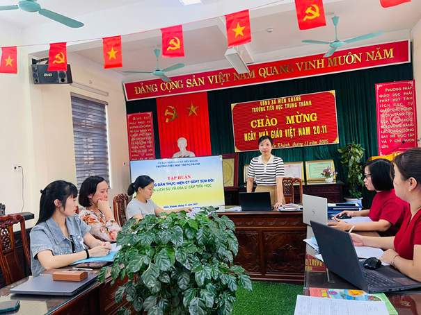 Thực hiện nhiệm vụ năm học 2025-2026, chiều ngày 14/11/2025 tổ chuyên môn 4, 5 đã tập huấn cho giáo viên thực hiện nội dung sửa đổi Chương trình giáo dục phổ thông môn Lịch sử và Địa lí cấp Tiểu học theo Thông tư 17/2025/TT-BGDĐT.